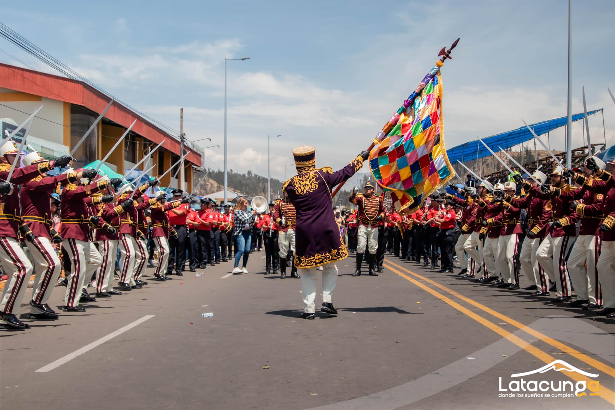 Originalmente eran tres y llevaban las banderas de España, de los encomenderos y la wipala utilizada por los indígenas y que se caracteriza por llevar cuadros de colores vivos, ésta es la que ahora lleva el Abanderado para irla ondulando durante el desfile
